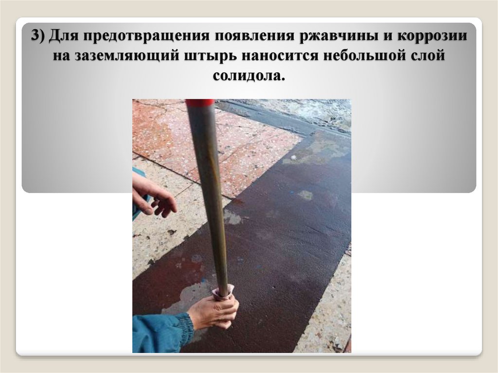 3) Для предотвращения появления ржавчины и коррозиина заземляющий штырь наносится небольшой слой