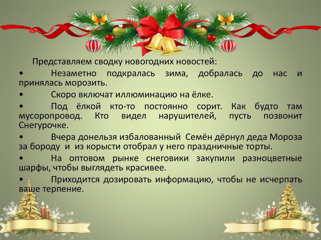 Представляем сводку новогодних новостей:Незаметно подкралась зима, добралась до нас и