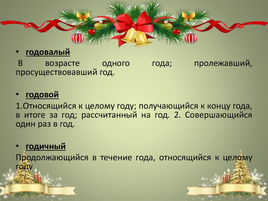 Скоро, скоро Новый год. Год. Образуйте отслова «год» при помощи различных