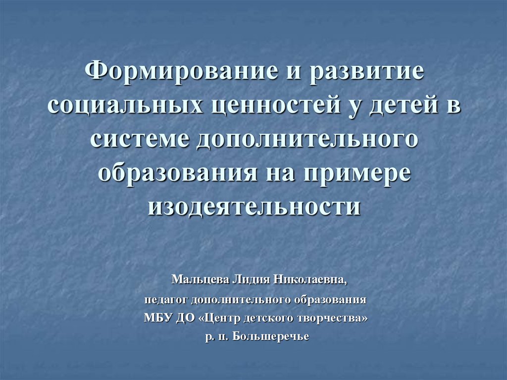 Формирование и развитие социальных ценностей у детей в системе дополнительного образования на примере изодеятельности