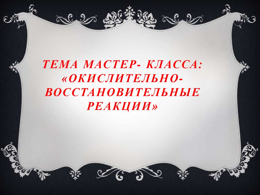 Мастер - класс: «Окислительно-восстановительные реакции»
