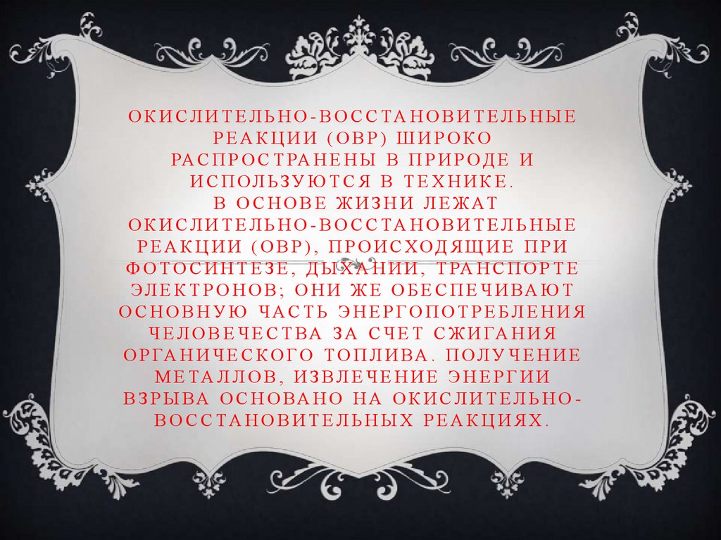 О К И СЛ И Т ЕЛ Ь Н О - В О С С ТА Н О В И Т ЕЛ Ь Н Ы ЕРЕАКЦИИ (ОВР) ШИРОКО