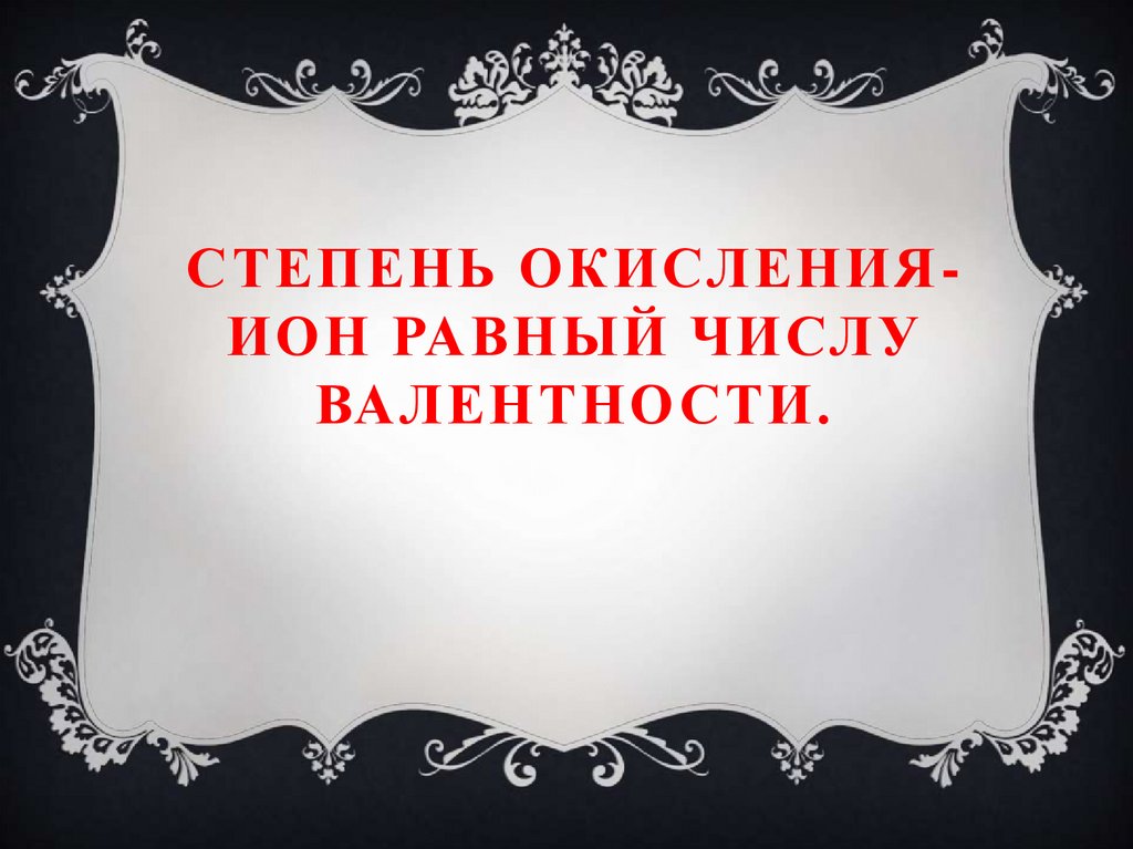 СТЕПЕНЬ ОКИСЛЕНИЯ ИОН РАВНЫЙ ЧИСЛУВАЛЕНТНОСТИ.