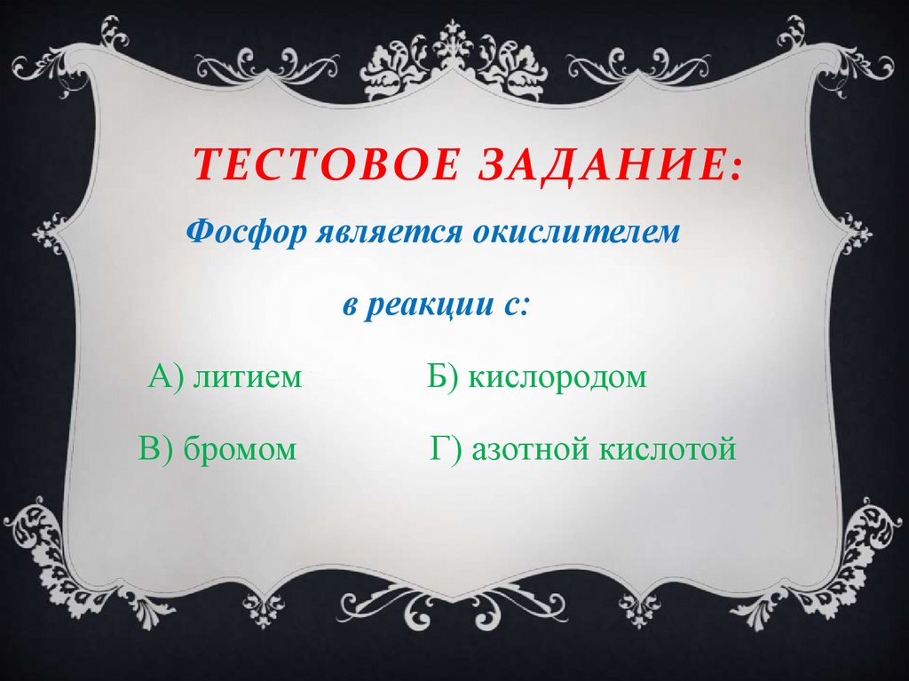 ТЕСТОВОЕ ЗА Д АНИЕ:Фосфор является окислителем