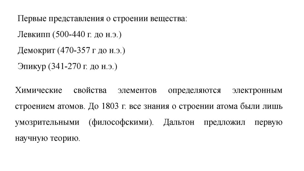 строением атомов. До 1803 г. все знания о строении атома были лишь