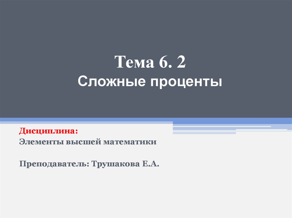 Сущность сложных процентовОсновное отличие сложных процентов от простых в том, что база для начисления