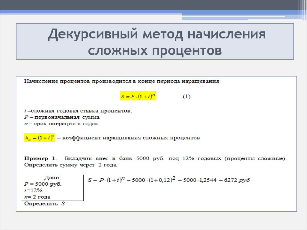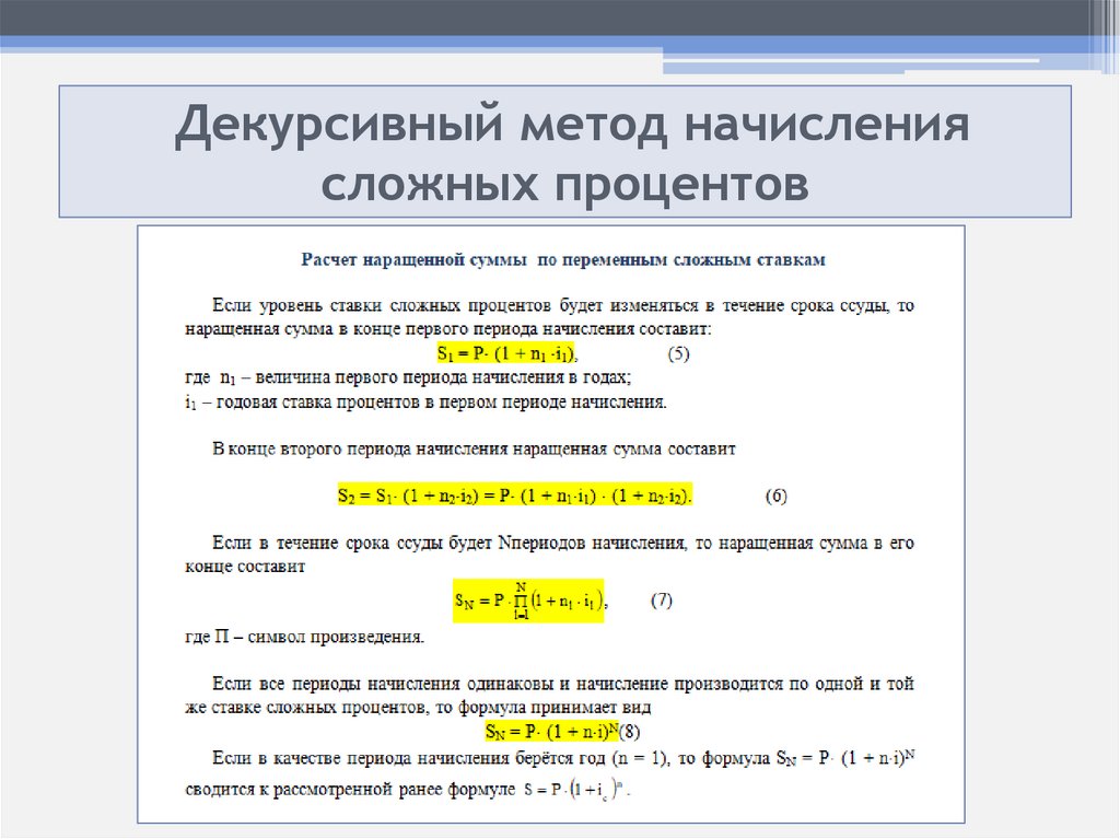 Механизм наращения первоначальной суммы по сложным процентам называется