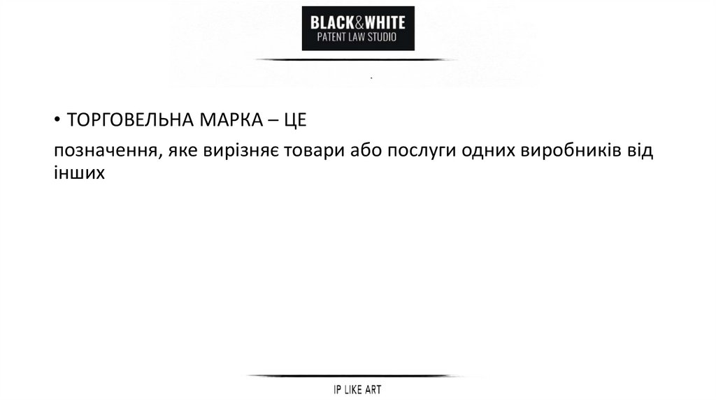 • ТОРГОВЕЛЬНА МАРКА – ЦЕпозначення, яке вирізняє товари або послуги одних виробників від