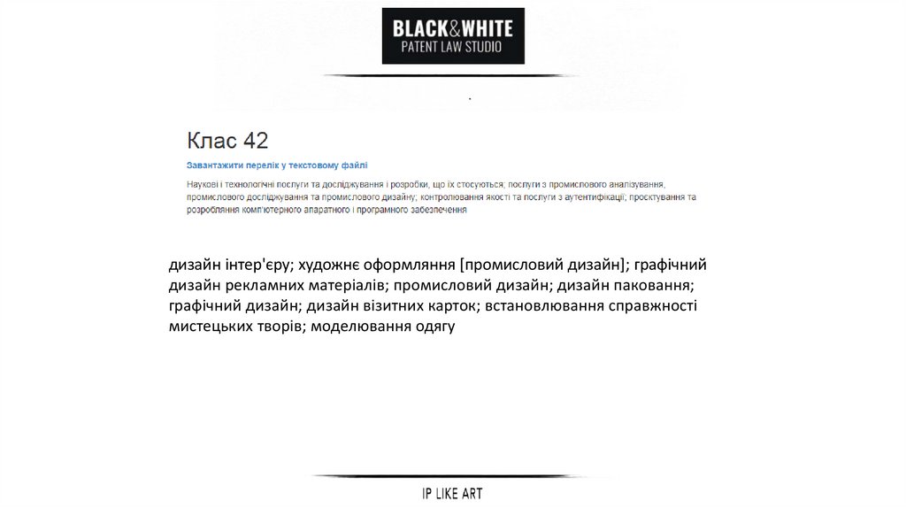 дизайн інтер'єру; художнє оформляння [промисловий дизайн]; графічнийдизайн рекламних матеріалів; промисловий дизайн; дизайн паковання;