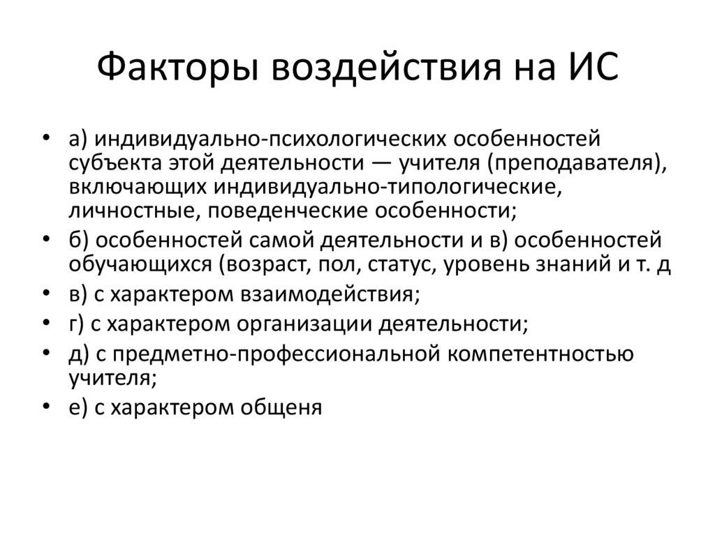 Факторы воздействия на ИС• а) индивидуально-психологических особенностей