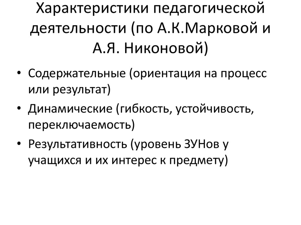 Характеристики педагогическойдеятельности (по А.К.Марковой и