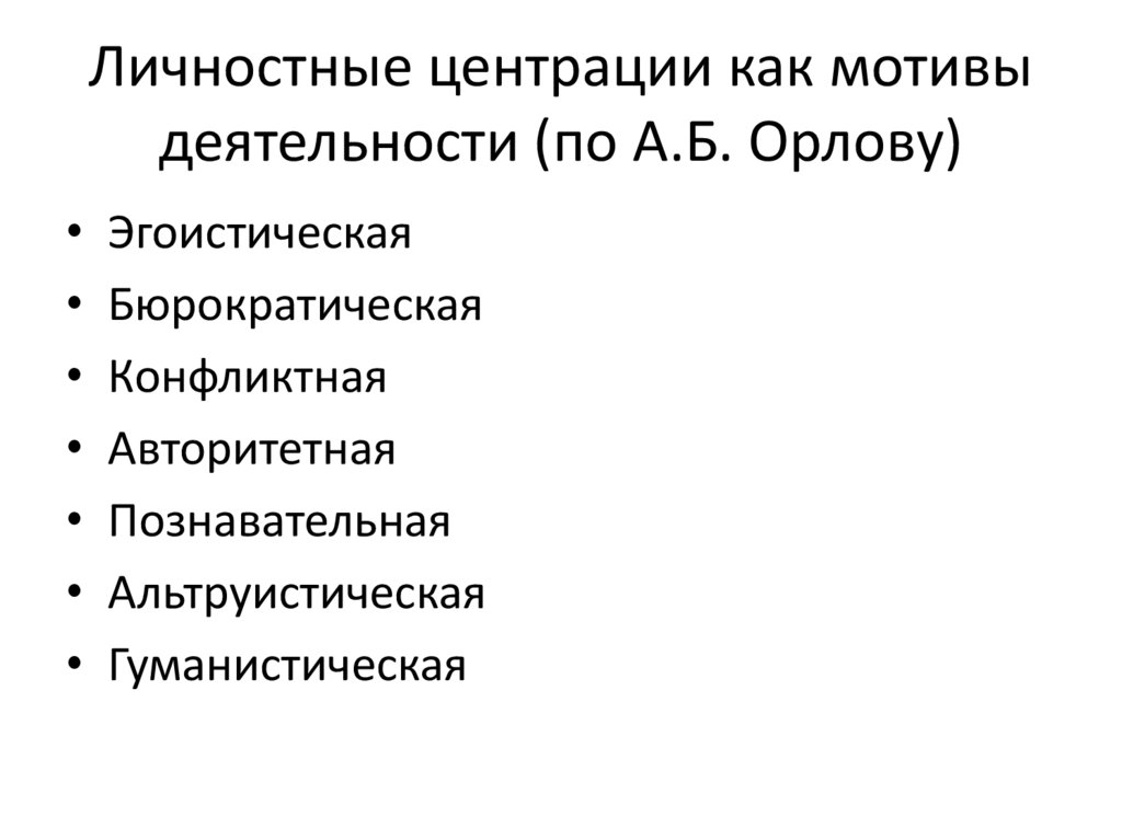 Личностные центрации как мотивыдеятельности (по А.Б. Орлову)