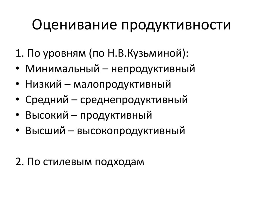 Оценивание продуктивности1. По уровням (по Н.В.Кузьминой):