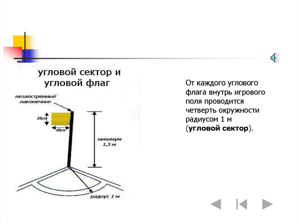 углом к линии ворот, вглубь поля проводятся