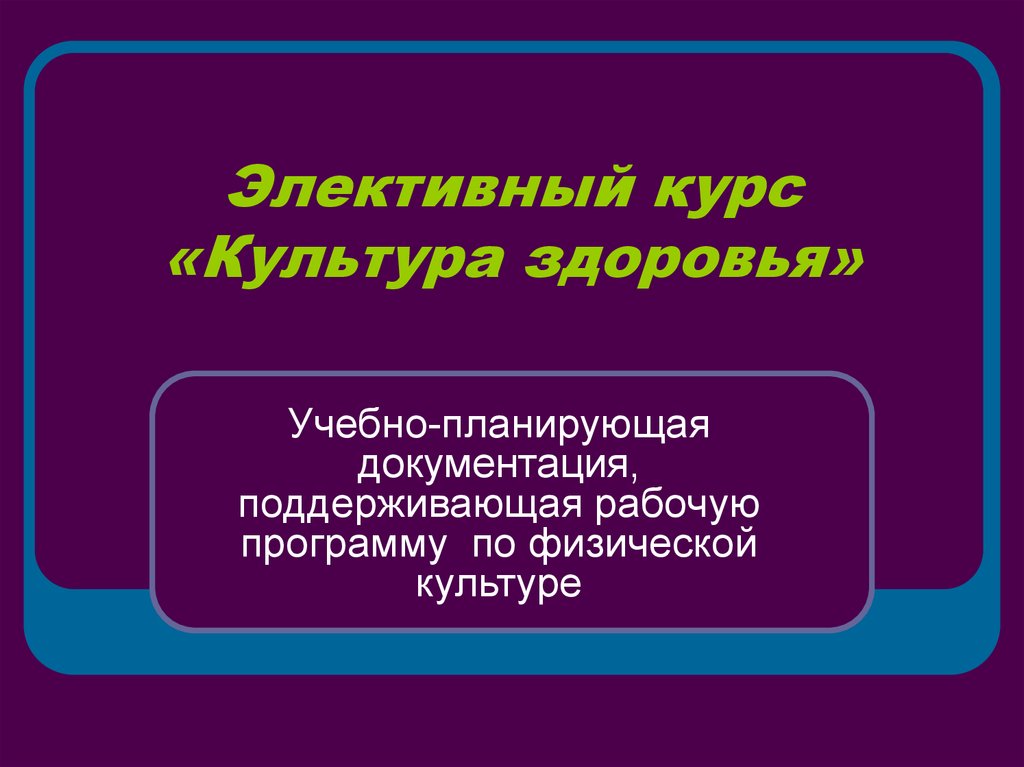 1. Элективный курс «Культура здоровья»