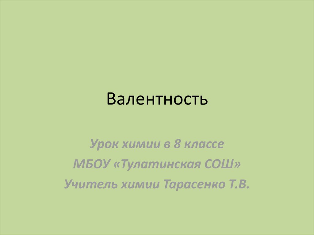 ВалентностьУрок химии в 8 классе