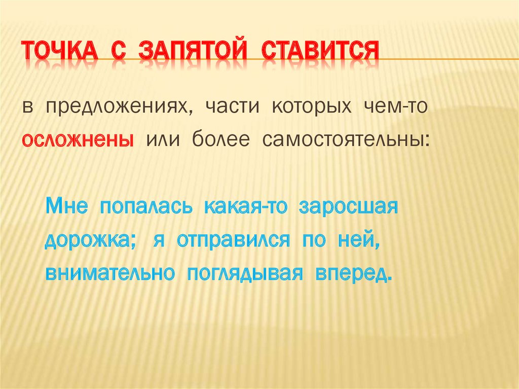 ТОЧКА С ЗАПЯТОЙ СТАВИТСЯв предложениях, части которых чем-то