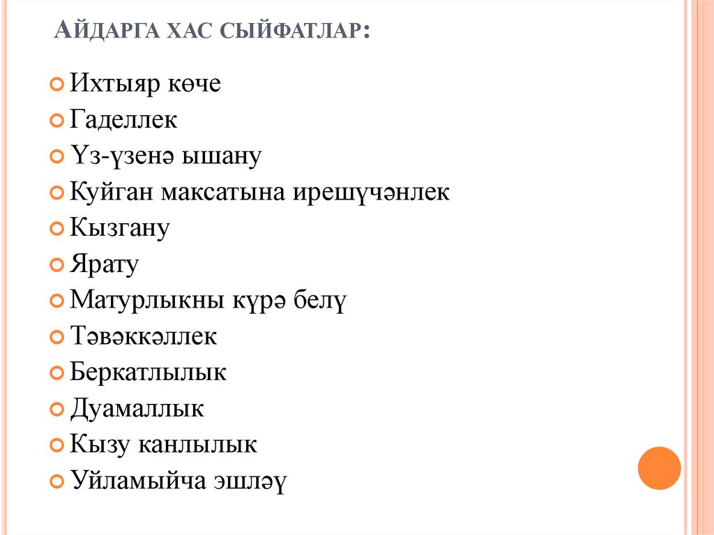 АЙДАРГА ХАС СЫЙФАТЛАР:Ихтыяр