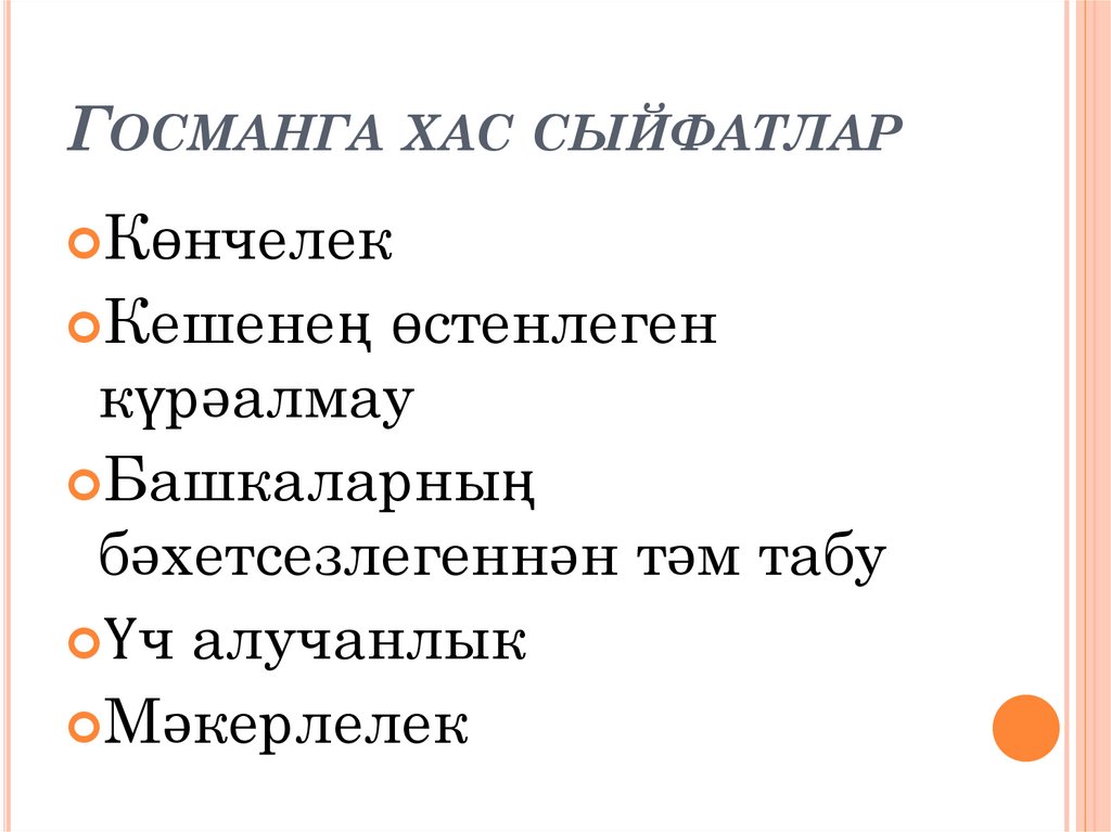 ГОСМАНГА ХАС СЫЙФАТЛАРКөнчелек