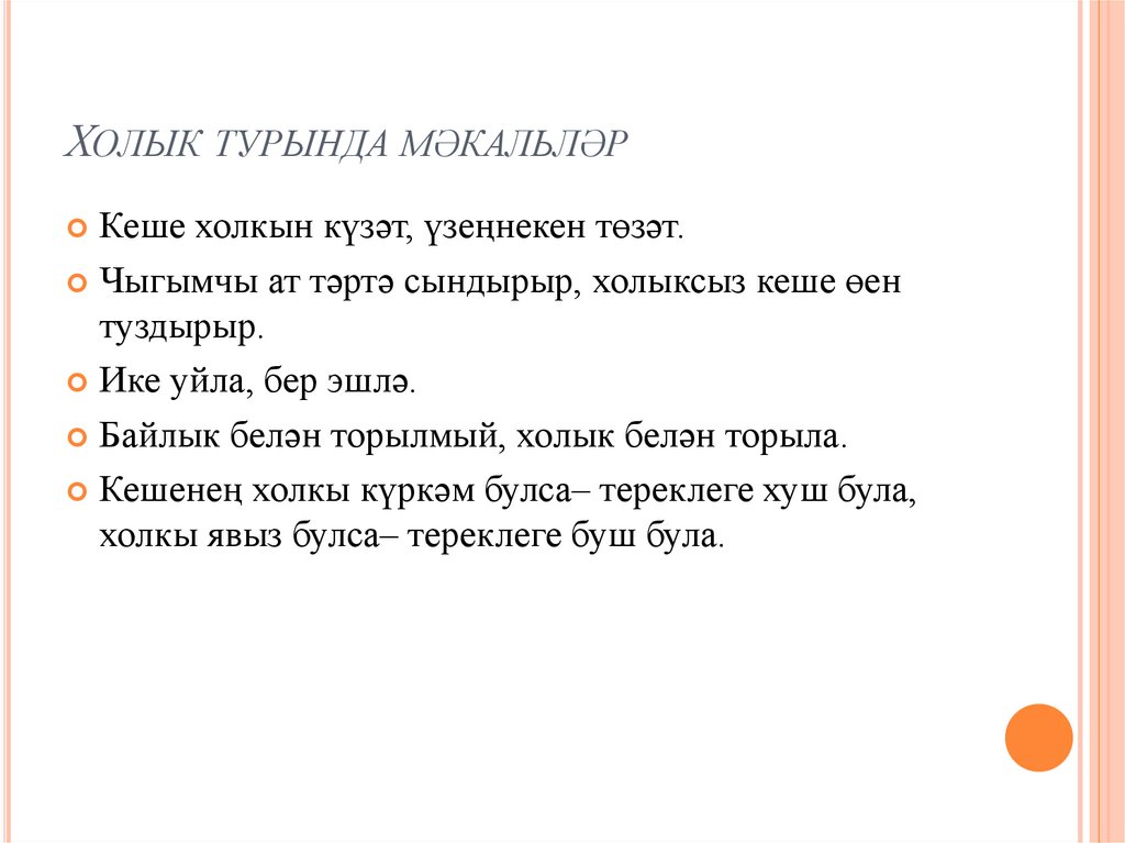 ХОЛЫК ТУРЫНДА МӘКАЛЬЛӘРКеше холкын күзәт, үзеңнекен төзәт.
