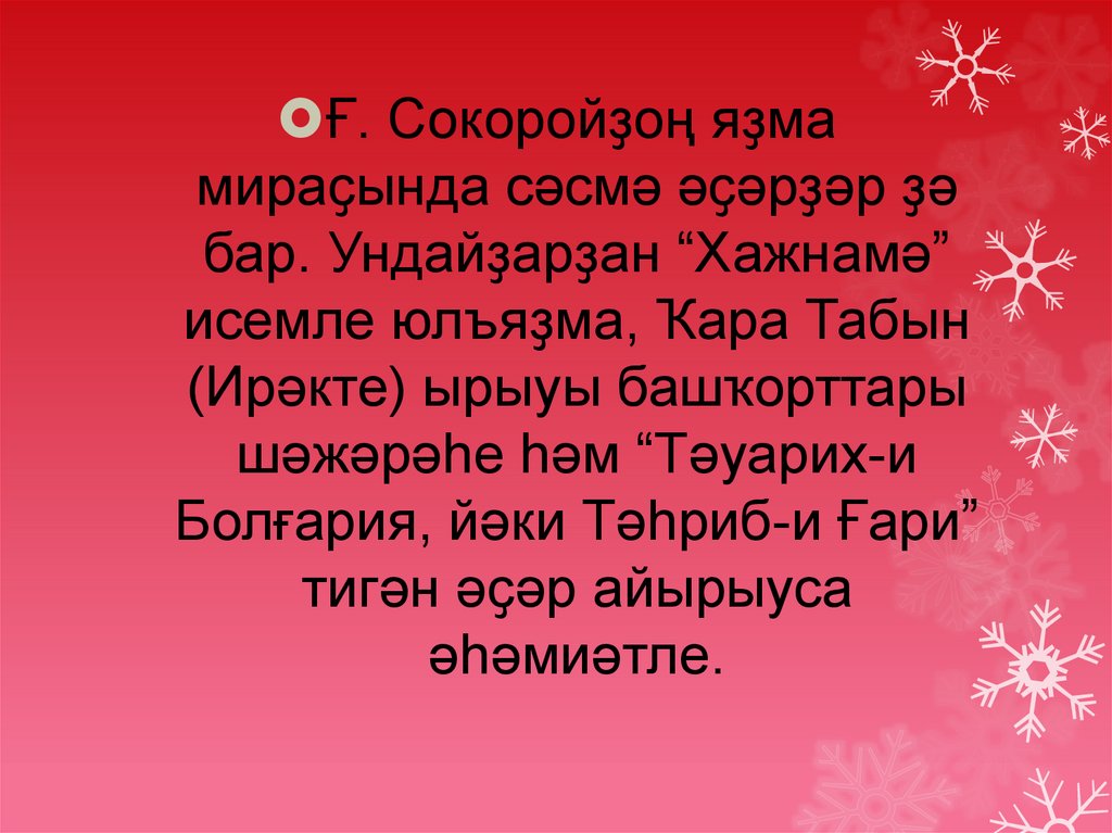 Ғ. Сокоройҙоң яҙмамираҫында сәсмә әҫәрҙәр ҙә