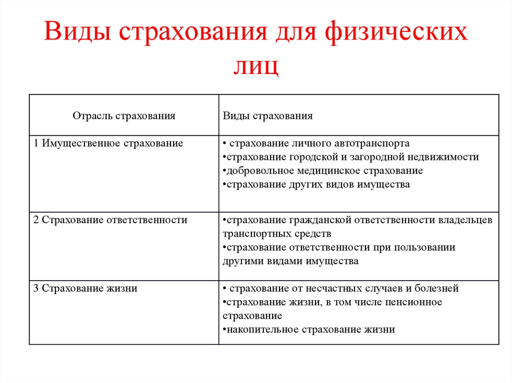 Виды страхования для физическихлиц