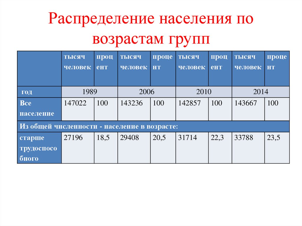 Распределение населения повозрастам групп
