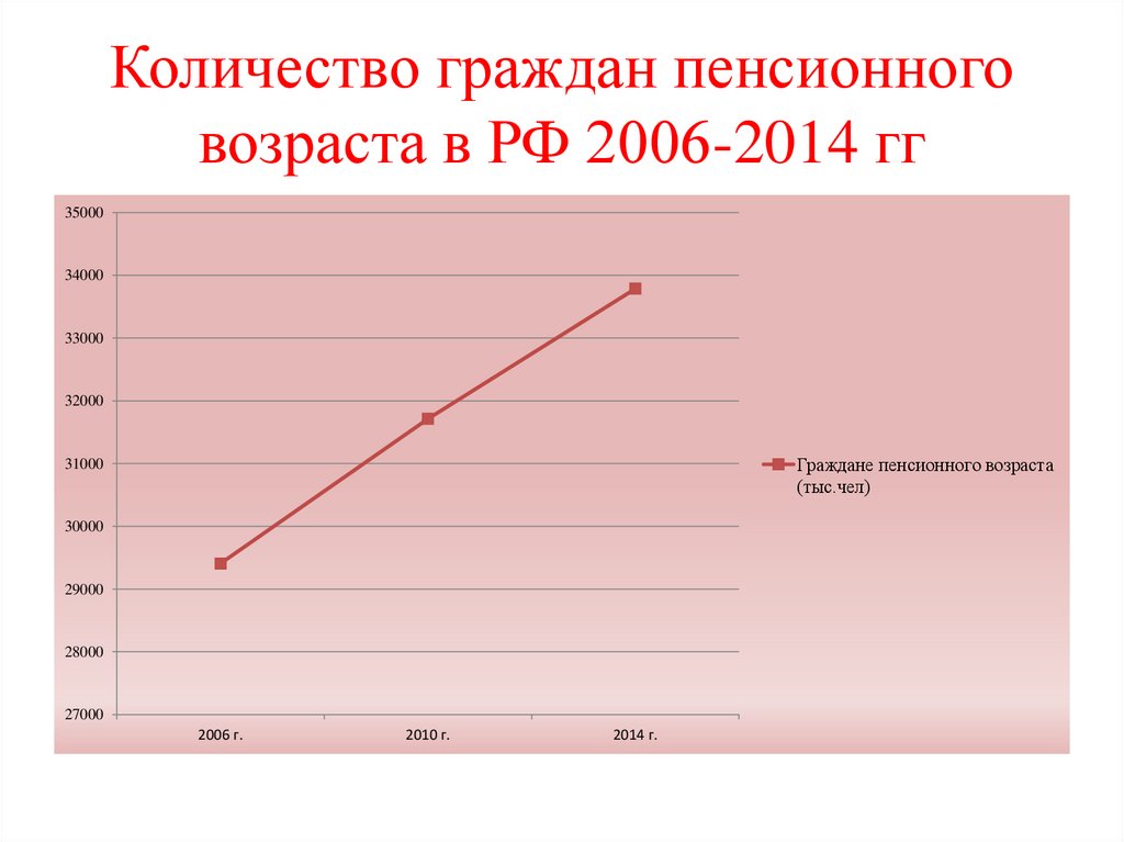 Количество граждан пенсионноговозраста в РФ 2006-2014 гг