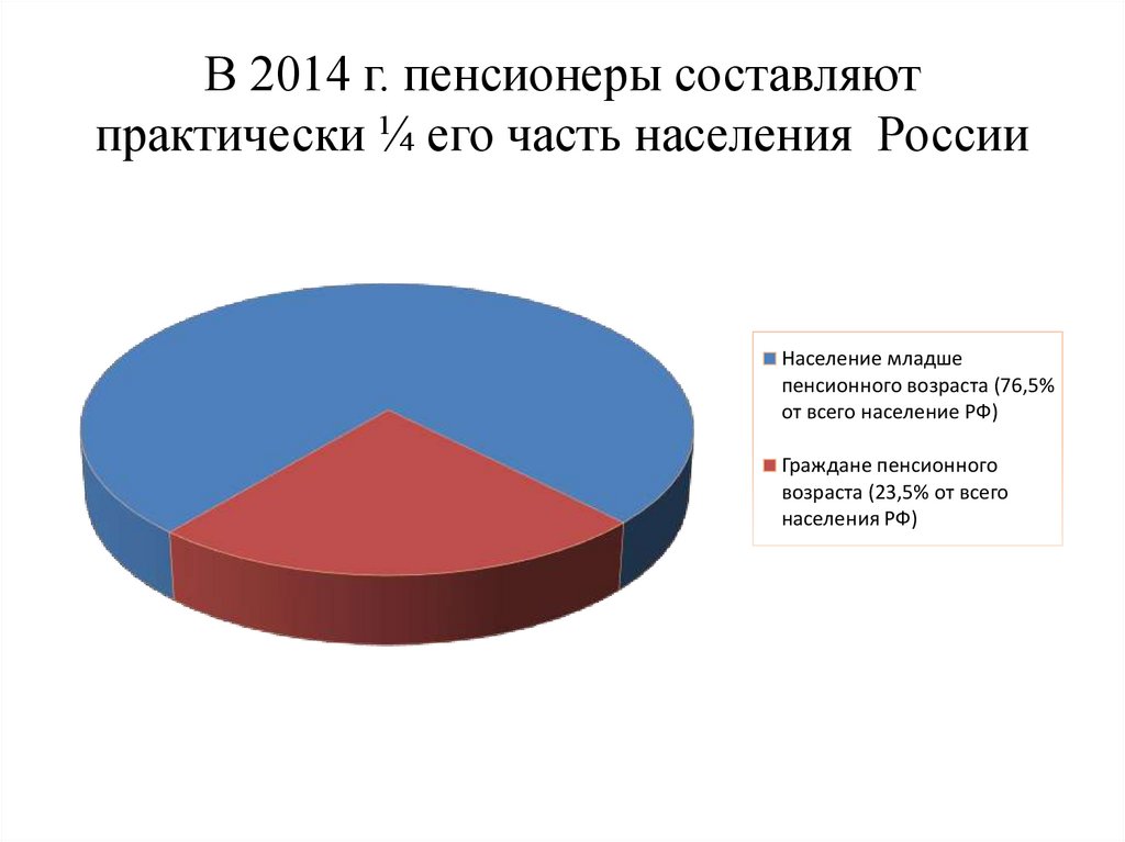 В 2014 г. пенсионеры составляютпрактически ¼ его часть населения России