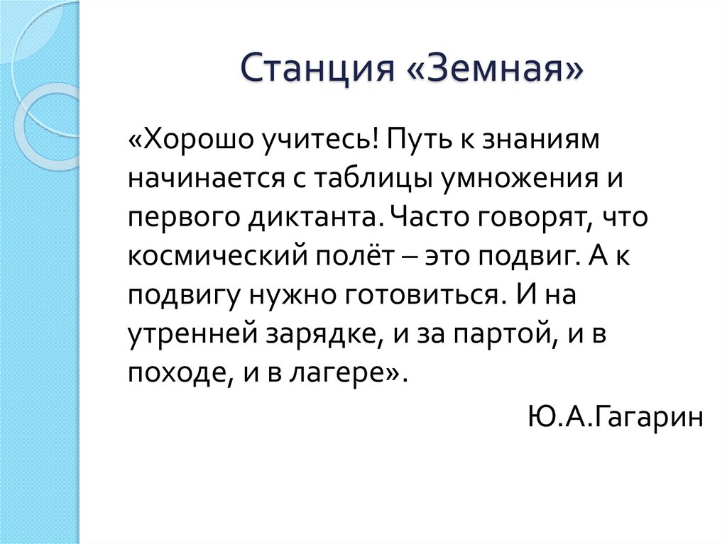 Станция «Земная»«Хорошо учитесь! Путь к знаниям