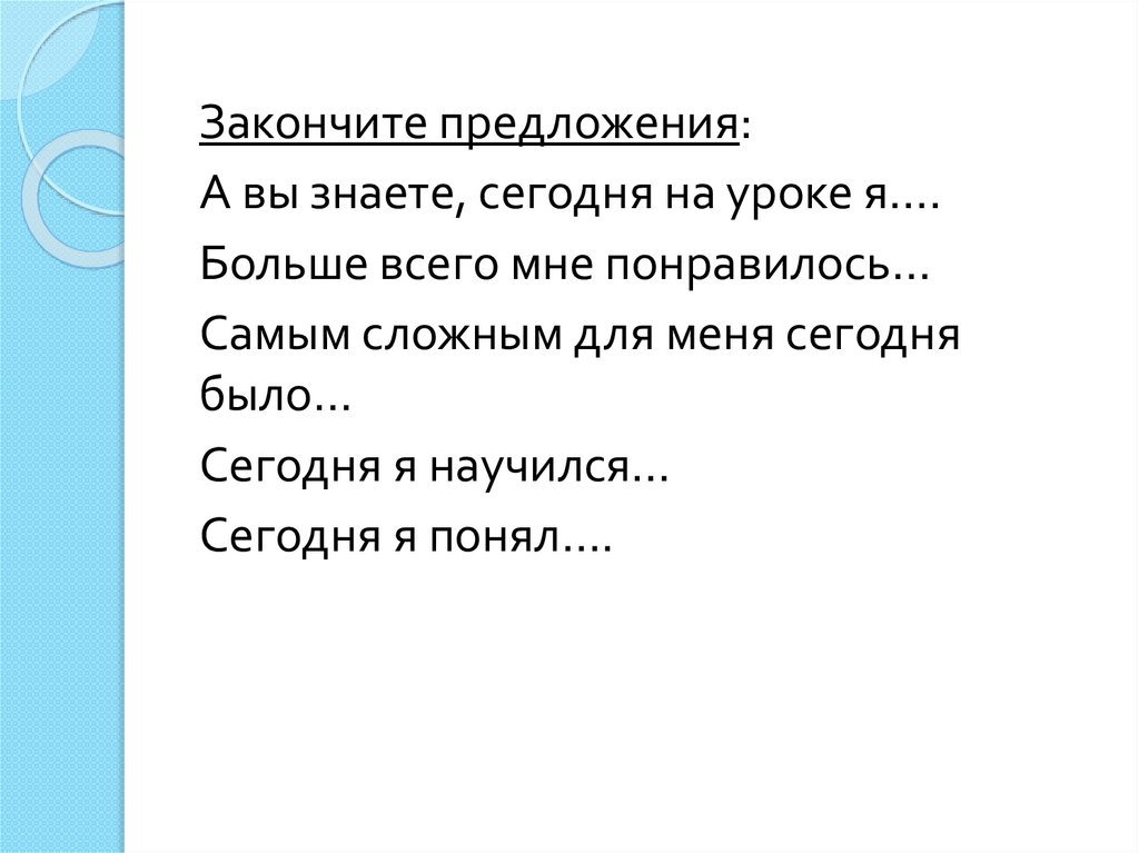 Закончите предложения:А вы знаете, сегодня на уроке я….