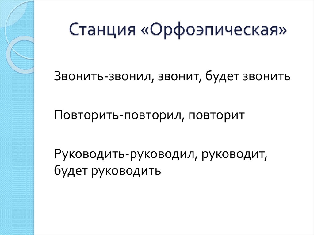 Станция «Орфоэпическая»Звонить-звонил, звонит, будет звонить