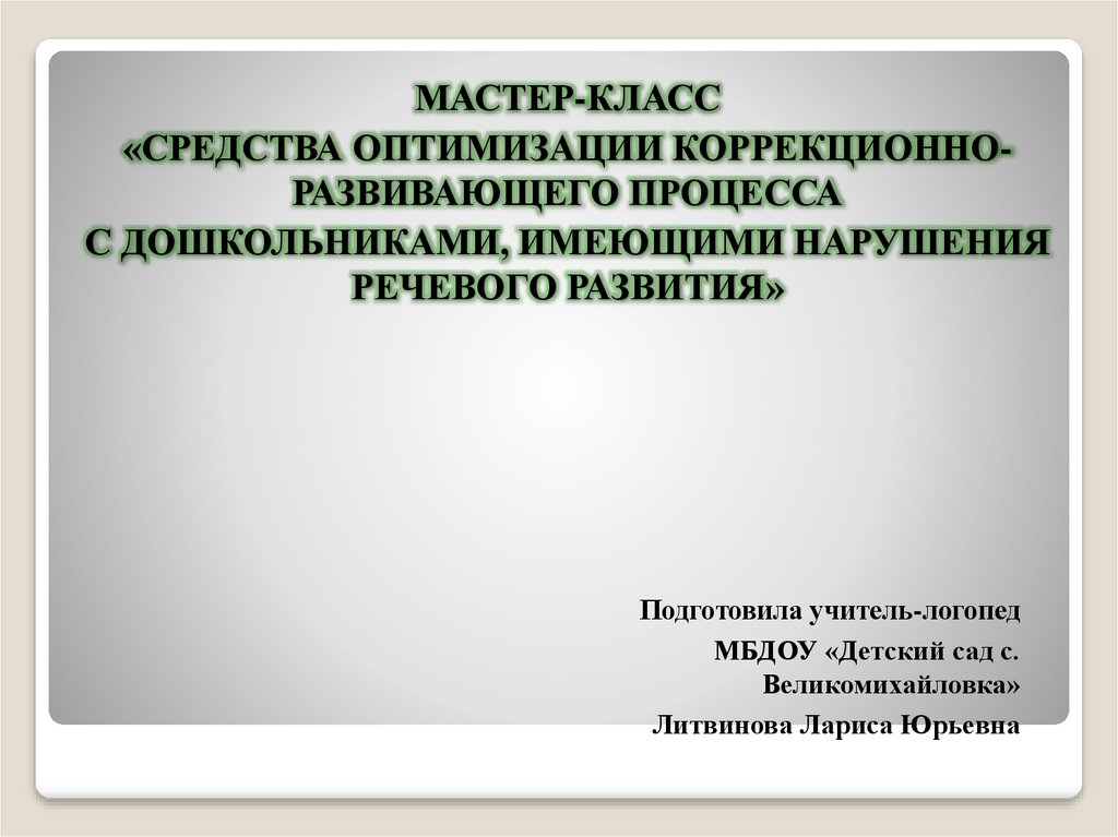 МАСТЕР-КЛАСС«СРЕДСТВА ОПТИМИЗАЦИИ КОРРЕКЦИОННОРАЗВИВАЮЩЕГО ПРОЦЕССА