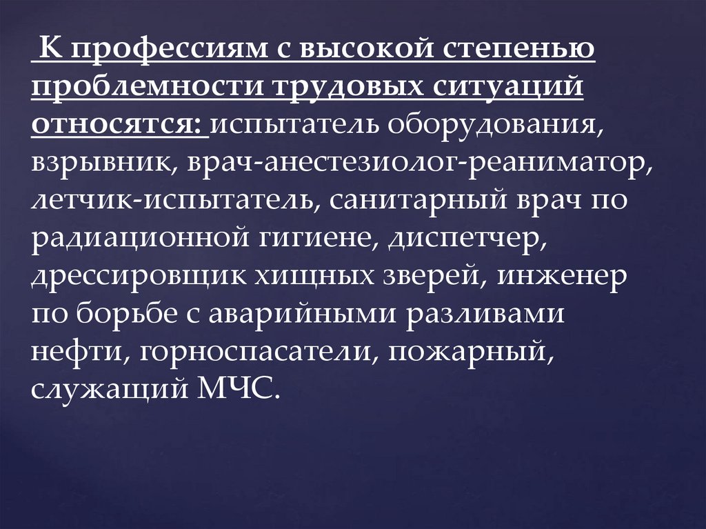 К профессиям с высокой степеньюпроблемности трудовых ситуаций