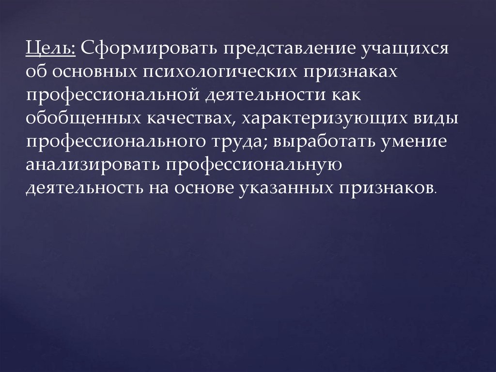 Цель: Сформировать представление учащихсяоб основных психологических признаках