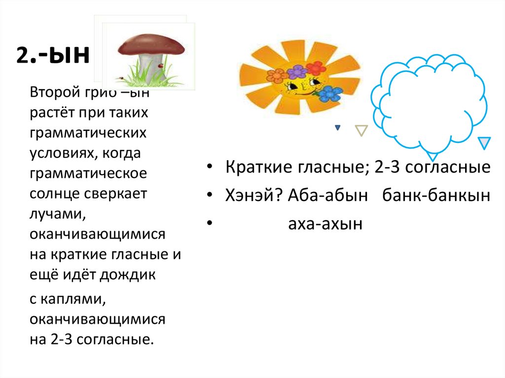грибочки –ын,иин.• Второй гриб –ын растёт при