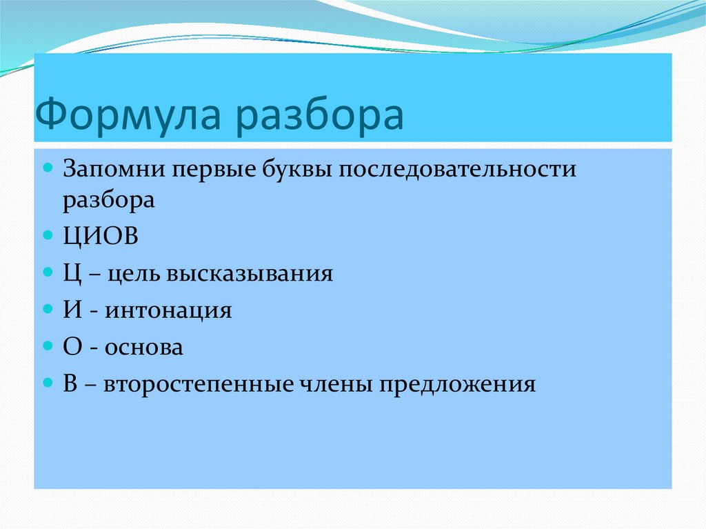 Формула разбораЗапомни первые буквы последовательности