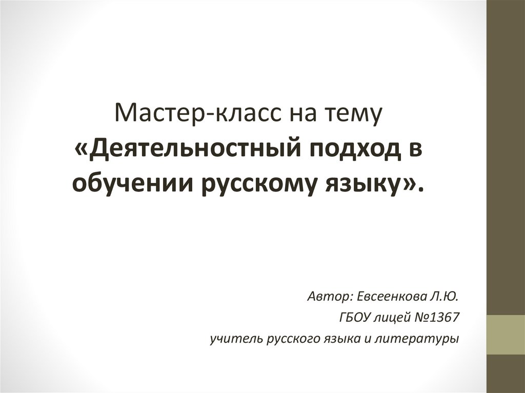 Мастер-класс на тему«Деятельностный подход в
