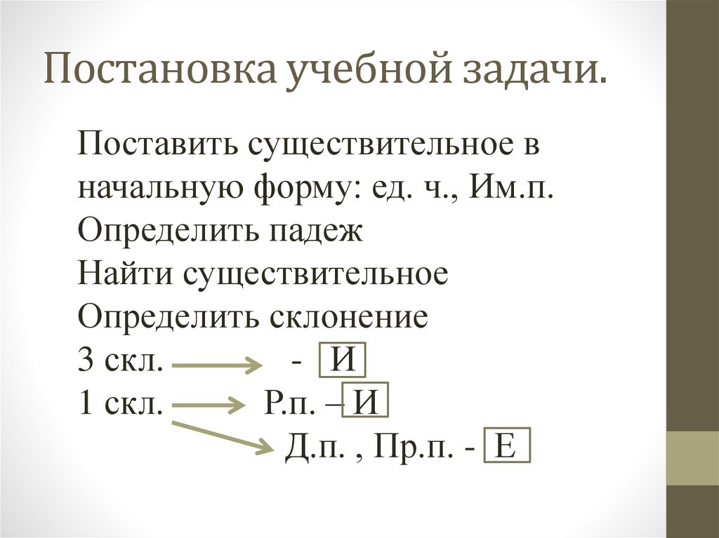 Постановка учебной задачи.Поставить существительное в