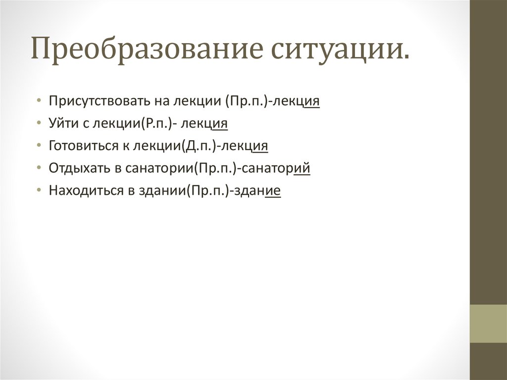 Преобразование ситуации.Присутствовать на лекции (Пр.п.)-лекция