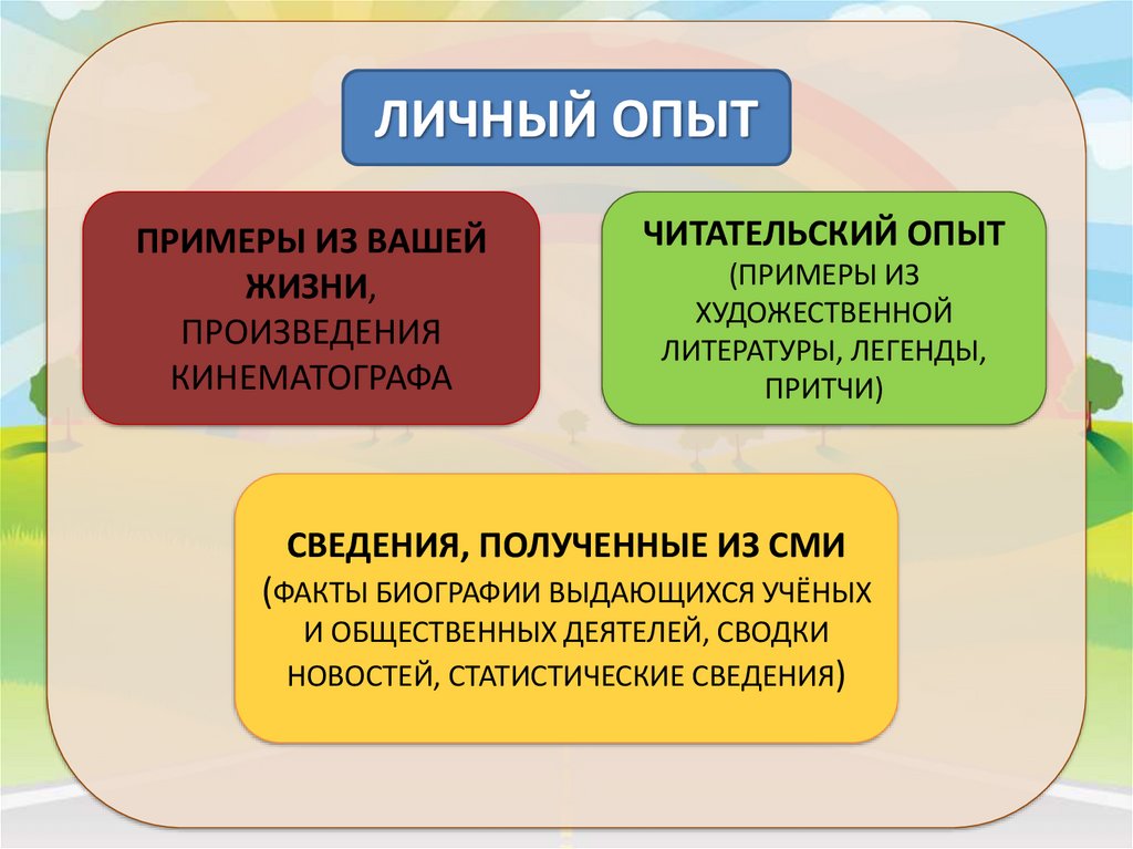 примеры из текста и жизненного опыта.