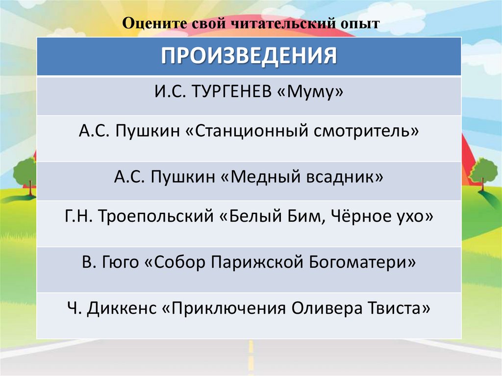 Оцените свой читательский опытПРОИЗВЕДЕНИЯ