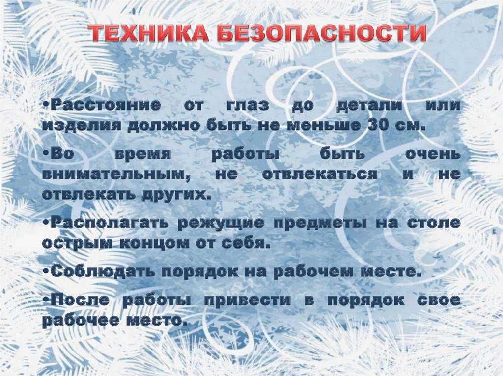 •Расстояние от глаз до детали илиизделия должно быть не меньше 30 см.