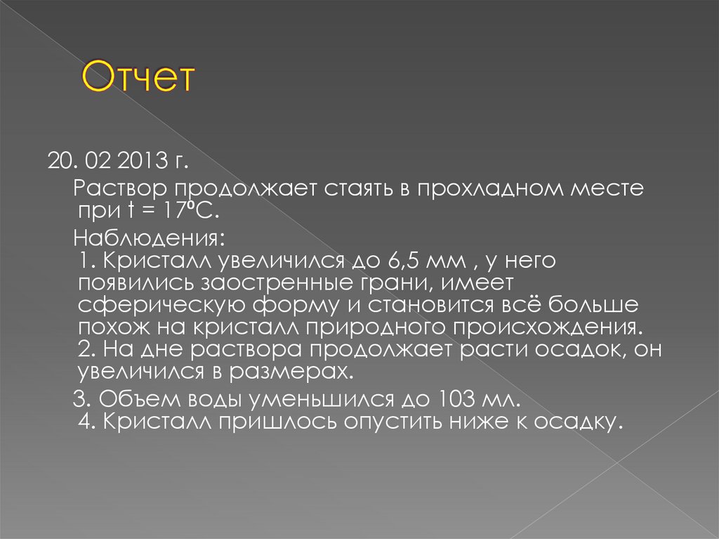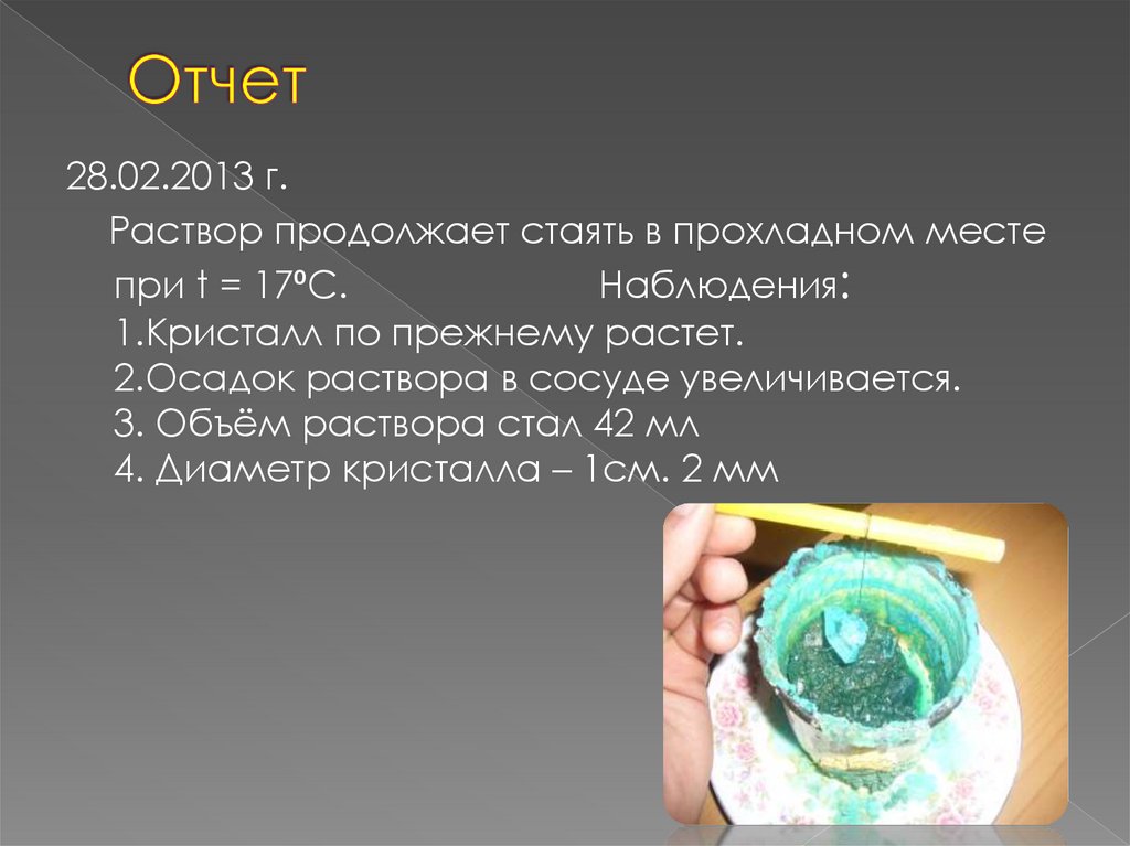 20. 02 2013 г.Раствор продолжает стаять в прохладном месте