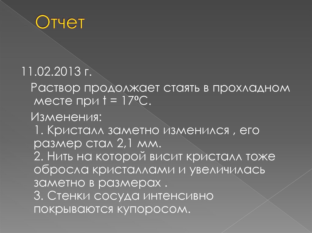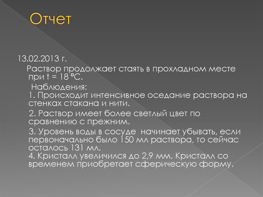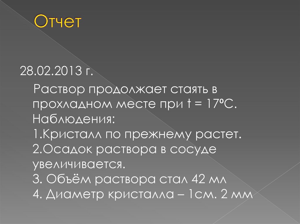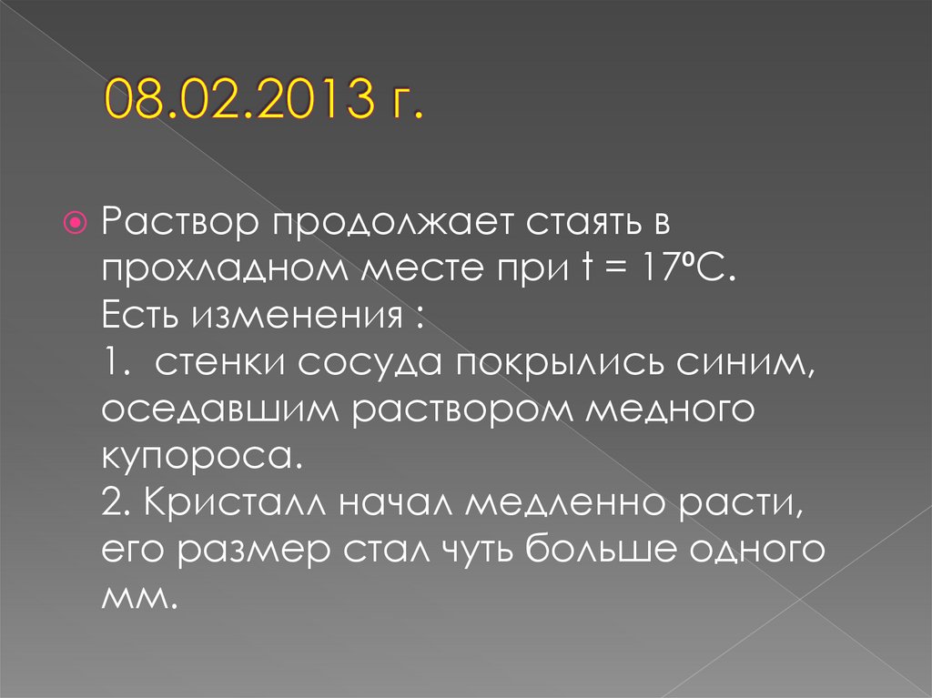 13.02.2013 г.Раствор продолжает стаять в прохладном месте