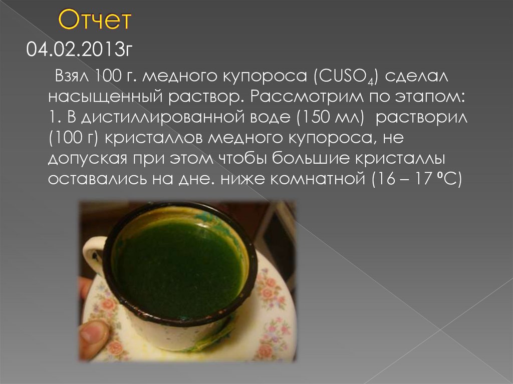 04.02.2013гВзял 100 г. медного купороса (CUSO4) сделал