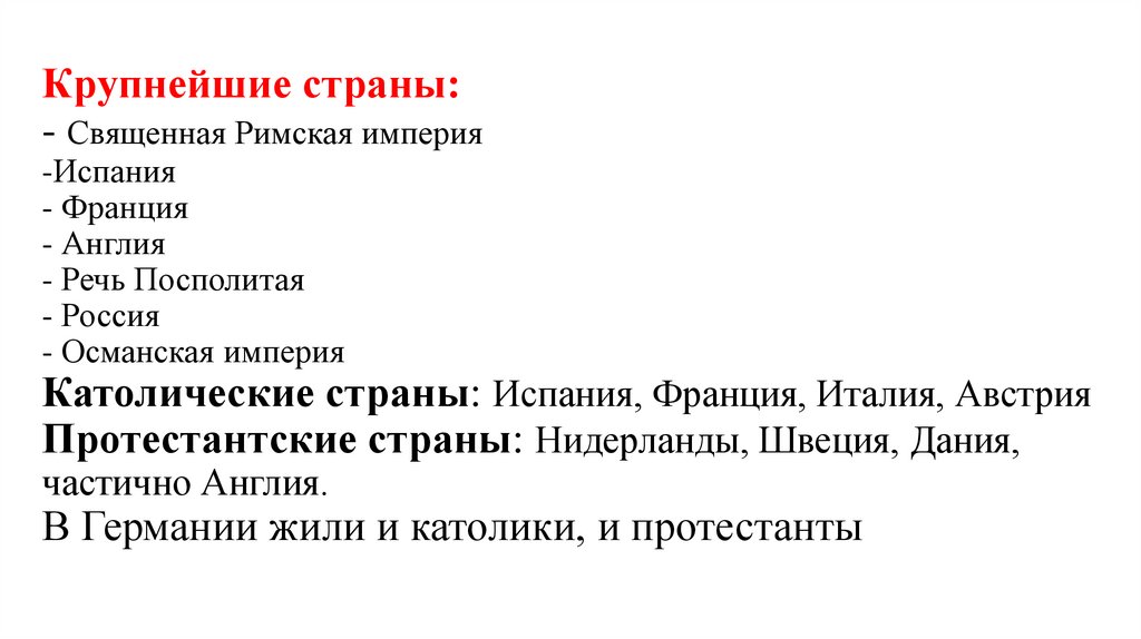 Протестантские страны: Нидерланды, Швеция, Дания,