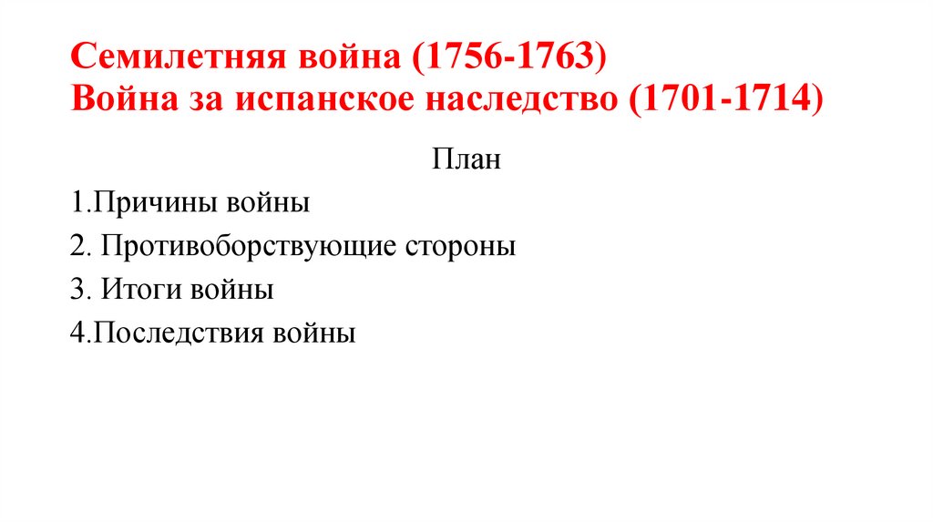 Семилетняя война (1756-1763)Война за испанское наследство (1701-1714)