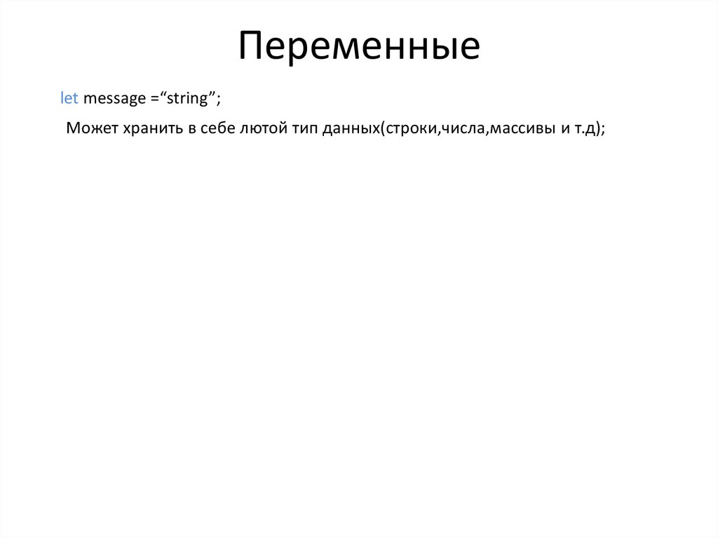 Переменные let message =“string”;