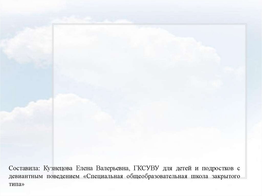 Составила: Кузнецова Елена Валерьевна, ГКСУВУ для детей и подростков сдевиантным поведением «Специальная общеобразовательная школа закрытого